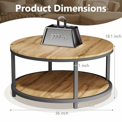 [2-Tier Coffee Table] Spacious and Neat Living Room Storage: Our 36-inch round coffee table features a 2-tier design, providing ample space for all your Living Room essentials. Keep your daily supplies within reach and maintain a tidy and organized space.