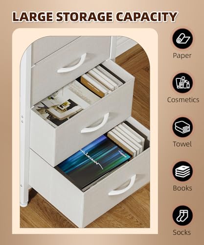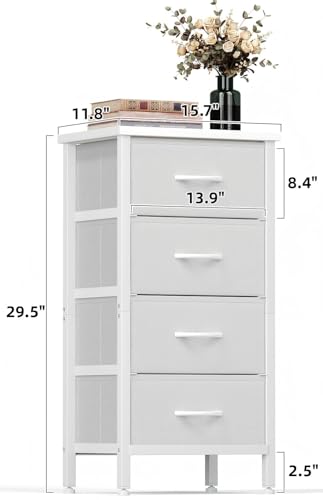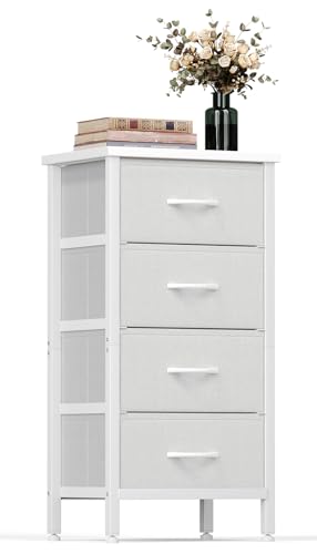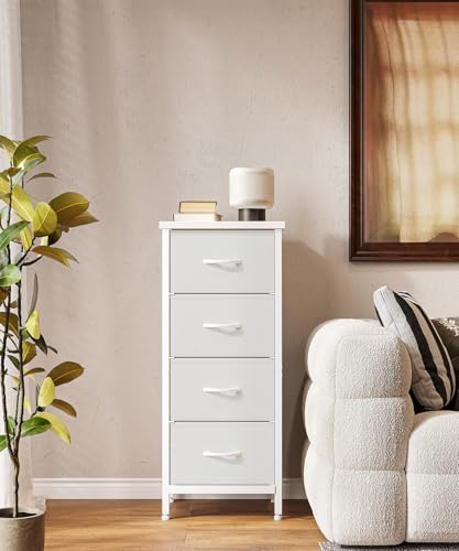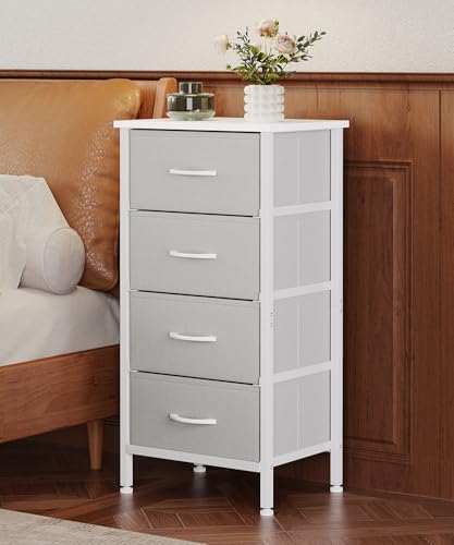 4 Drawers Dresser, Tall Dressers for Bedroom, Storage Cabinete Chest of Drawers, Commode De Chambre for Entryway, Living Room, Bedside, Closet, Fabric Wooden Dresser Bins(Grey White)