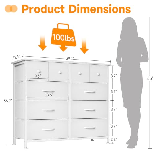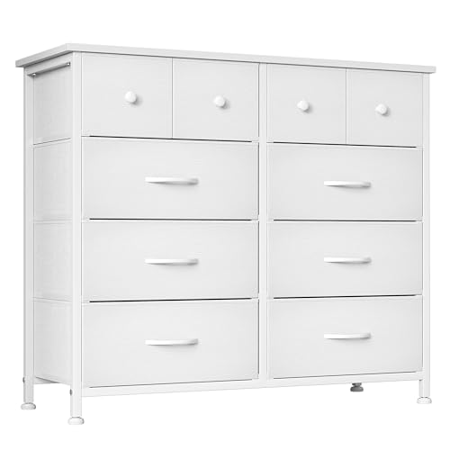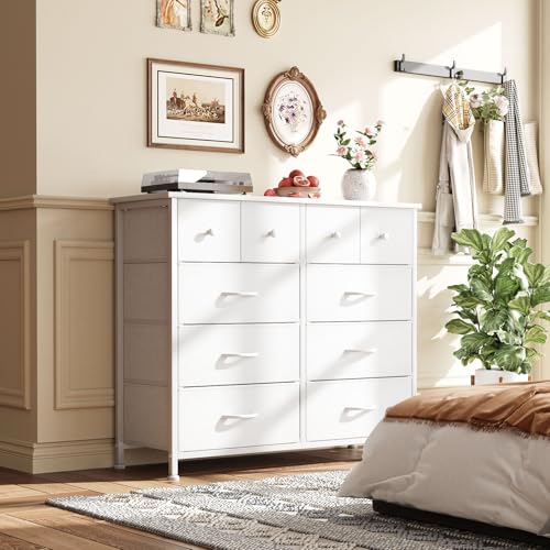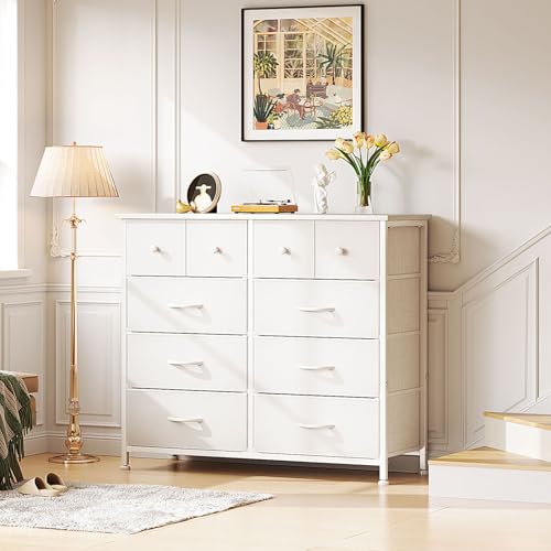 MUTUN Dresser for Bedroom, Commode De Chambre, 10 Storage Tall Fabric Drawer Dresser for Living Room Closet Hallway Entryway, Chest of Drawers, Organizer Unit, White