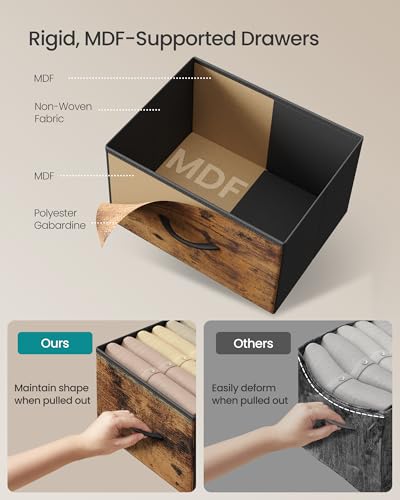 SONGMICS Dresser for Bedroom, Chest of Drawers, Steel, MDF, 6 Non-Woven Fabric Drawers, Storage Organizer Unit, Closet, Entryway, Rustic Brown and Ink Black ULGS123BH04