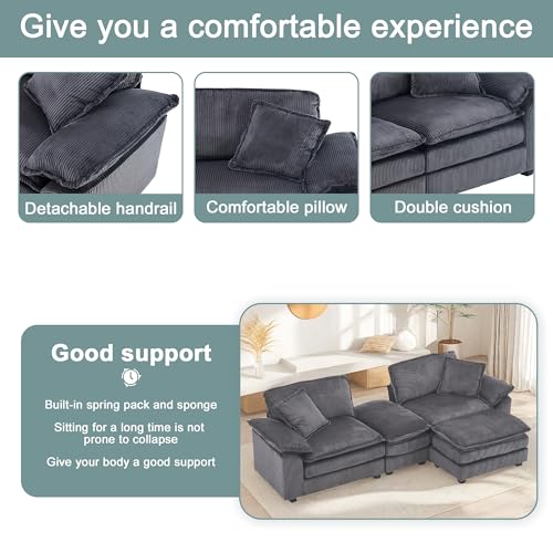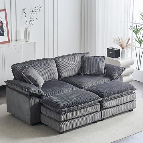 Extra-Large Reclining Sofa Modern Indoor Corduroy Sofa Set, Equipped with 2 Soft Cushions Comfortable Sofa Suitable for Living Rooms Apartments Offices (Gray, 84.6 * 56.3 * 34.3 in)