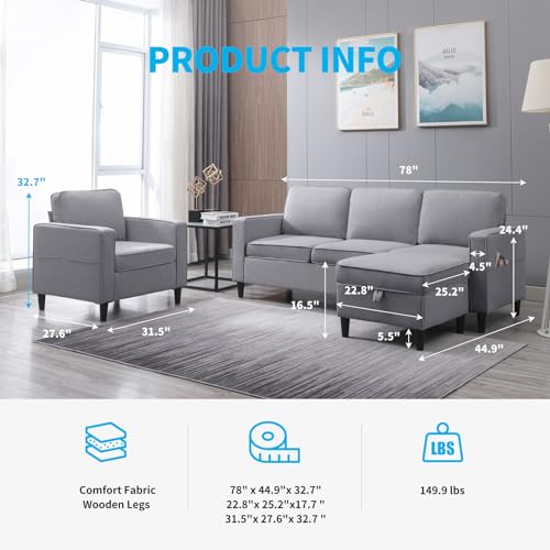【Space-Saving Solution】This Convertible Sofa set offers a space-saving solution for homeowners looking for furniture that fits small spaces. The convertible sofa set comprises of a 3-seater sofa, armchair, and ottoman all of which proportioned appropriately with space considerations in mind. This compact design makes for easy relocation or repositioning, perfect for apartments or small living rooms