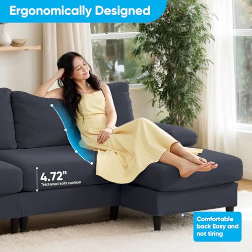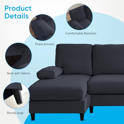 🚞【Sleek Minimalism】: The Mjkone Sectional Couch embraces a sleek, minimalist design, sporting smooth lines that convert any living room or apartment into a stylish, modern space. Its simple, elegant design makes it a perfect fit for various home styles.