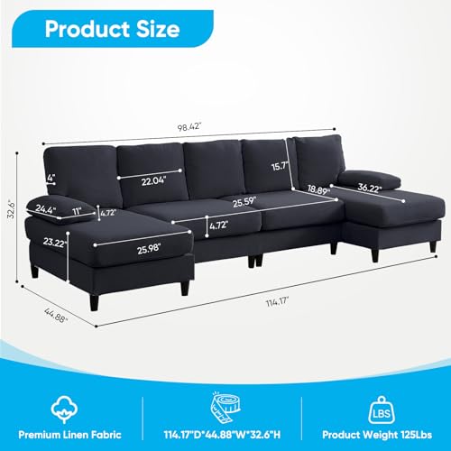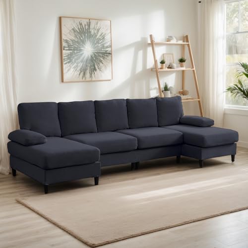 Mjkone Living Room Sectional Sofa, Linen U Shaped Sectional Couch, Oversized 4-Seat Modern U-Shaped Sofa Couch Set with Removable Pillows, Couches for Living Room, Apartment, Small Space – Dark Grey