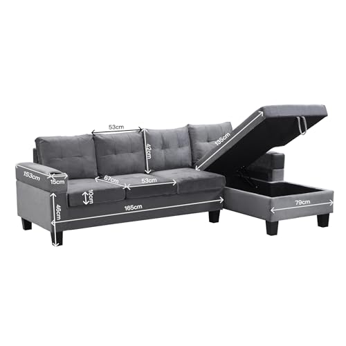 Sofa, Corner Sofa, Sectional Couch, L Shape, Divan Salan, Left Chaise Lounge with Storage (Left)