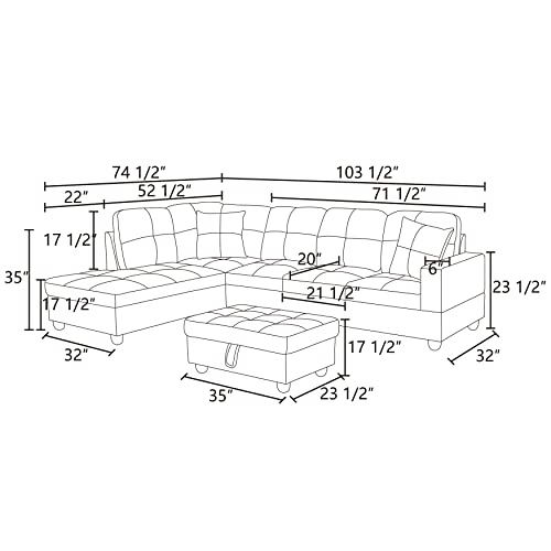 L-shaped Sectional Sofa & Convertible Ottoman: The L-shaped design saves more space but still provides ample seating space. The sofa is also equipped with a chaise longue to provide maximum comfort.You can put the convertible ottoman anywhere so that the sofa will have more possibilities and fun. You can set as many positions and shapes as you like.