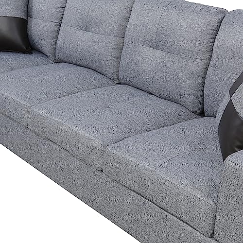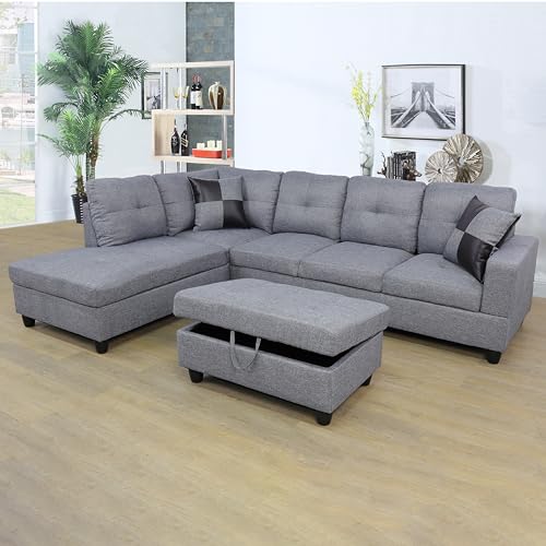 UBGO Living Room Furniture Sets,L-Shape Couch with Chaise Lounge & Storage Ottoman,Linen Sofas & Couches,3-Piece Sectional Sofa Set for Small Space Apartments- Grey (Left Hand Facing)