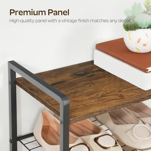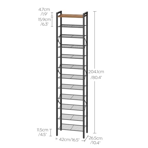 12-Tier Narrow Shoe Rack, Tall Shoe Rack for 12-24 Pairs, Slim Shoe Storage Organizer with Wooden Top, Space Saving, Metal Frame, for Entryway, Rustic Brown and Black SS61BR