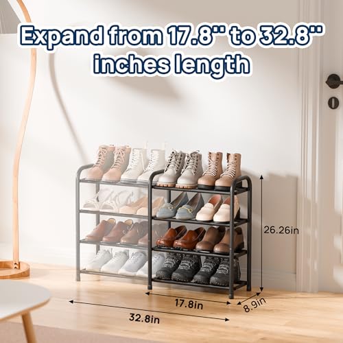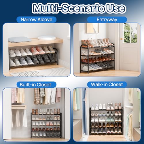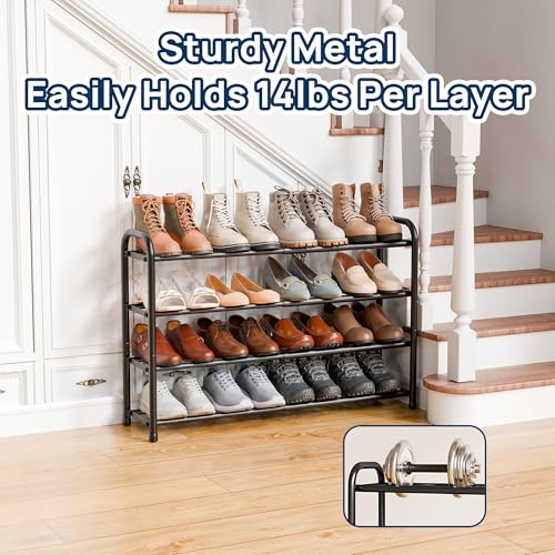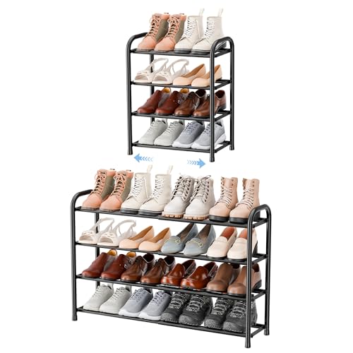 ENJOYBASICS Expandable Metal Shoe Racks for Closet, 4 Tier Adjustable Shoe Organizer Shelf, Black Free Standing Rack Storage for Entryway
