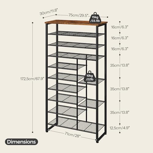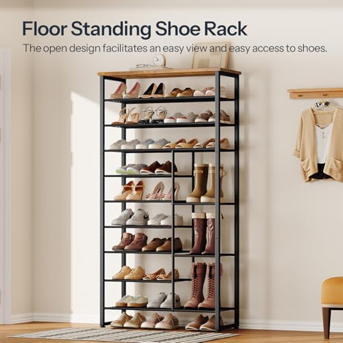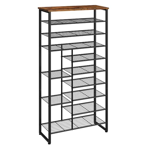 HOOBRO 10-Tier Shoe Rack, Shoe Shelf with Detachable Shelves, Large-Capacity Shoe Storage Organizer for Entryway, for 27-30 Pairs of Shoes, Hallway, Dorm Room, Rustic Brown and Black BF172XJ01