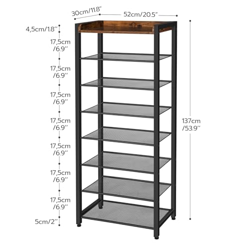 HOOBRO 8 Tier Shoe Rack, Narrow Shoe Storage Organizer with 7 Metal Shelves, Saving Space, Stable and Sturdy, Hold 14-21 Pairs of Shoes, for Entryway, Hallway, Living Room, Rustic Brown BF48XJ01