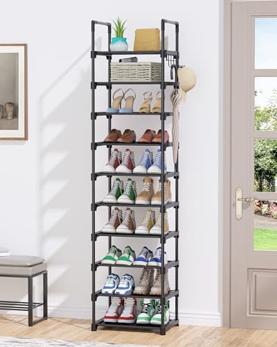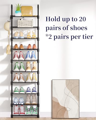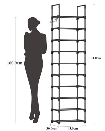 SPACE-SAVING STORAGE: With a slim 43.0cm ×30.0cm footprint and a height of 174.0cm, this 10-tier shoe storage maximizes vertical space. This shoe organizer compact base fits easily into tight spots, while the tall design keeps shoes organized and within easy reach. It can hold up to 20 pairs of shoes, tips: please hold 2 pairs per tier.