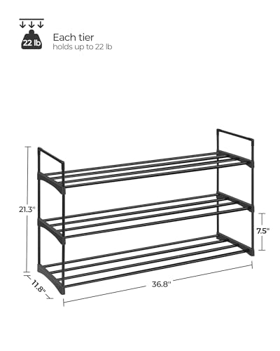 Shoe Rack, 3 Tier Shoe Organizer, Shoe Rack for Closet, Metal Shoe Storage Organizer for 15 Pairs, Black SSR003H