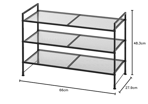 SimpleHouseware 3-Tier Stackable Mesh Shoe Racks with Shelves for 9 Pairs of Shoes Storage, Black