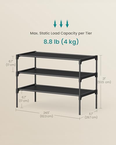 SONGMICS Shoe Rack, 3-Tier Shoe Storage Organizer, Space-Saving, Entryway, Metal Frame, Non-Woven Fabric Shelves, Ink Black ULSH023BH01