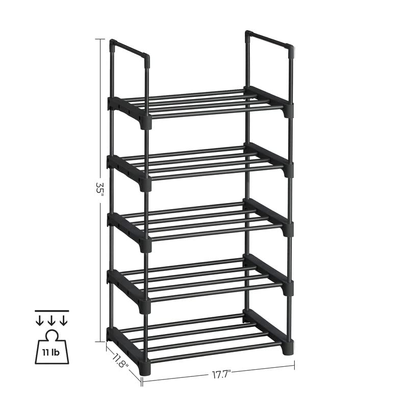 SONGMICS Shoe Rack, 5 Tier Shoe Organizer, Set of 2 Metal Shoe Storage Shelves, Easy to Assemble, Entryway, Black ULSA055B02