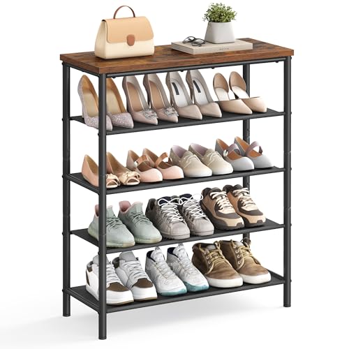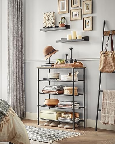 VASAGLE Shoe Rack, 5 Tier Shoe Storage Rack for 12-16 Pairs of Shoes, Shoe Organizer for Entryway, with 4 Fabric Shelves and Top Panel, Steel Frame, Rustic Brown and Black ULBS036B01