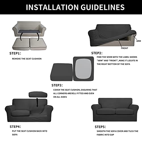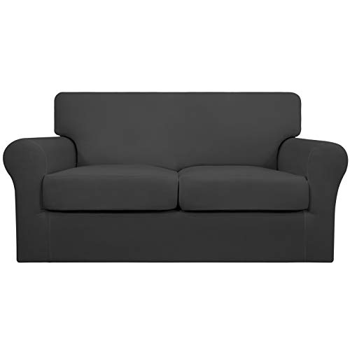 Easy-Going 3 Pieces Couch Covers for 2 Cushion Couch Stretch Loveseat Slipcover Proof Fitted Furniture Protector Spandex Sofa Loveseat Cover Washable Furniture Protector for Pets (Medium, Dark Gray)