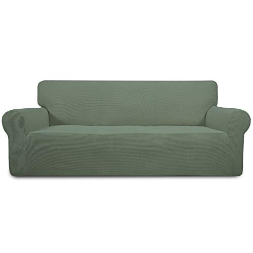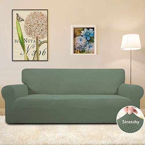 Easy-Going Stretch Sofa Slipcover Couch Sofa Cover Furniture Protector Soft with Elastic Bottom for Kids Spandex Jacquard Fabric Small Checks(Sofa Large,Greyish Green)
