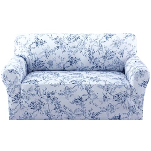 H.VERSAILTEX Floral Pattern Loveseat Cover Printed 2 Cushion Sofa Cover High Stretch Couch Covers for Sofa Super Soft Fabric Couch Protector for Dogs (Garden Bliss-Blue,Loveseat)
