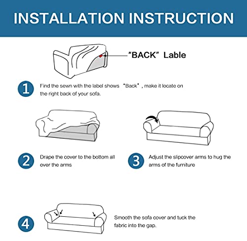 NON SLIP: Effortless to install on and off (guild photos on selling page), constructed with thick elastic bands to cover the bottom edges well for a full protection, hassle free for wrinkle, keep staying in place firmly, high recommended for both leather and cloth sofa