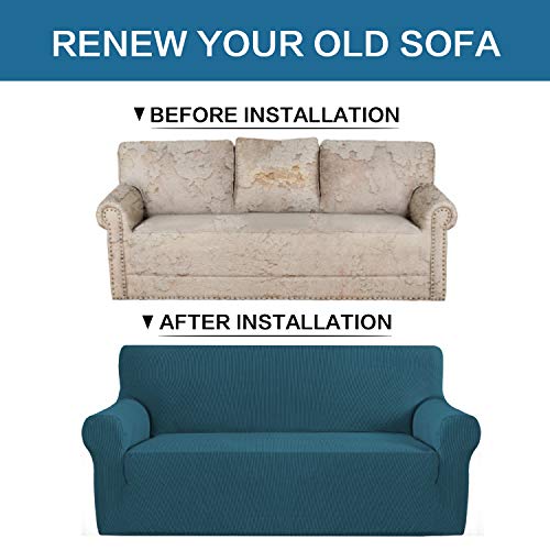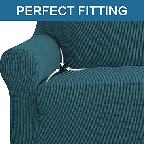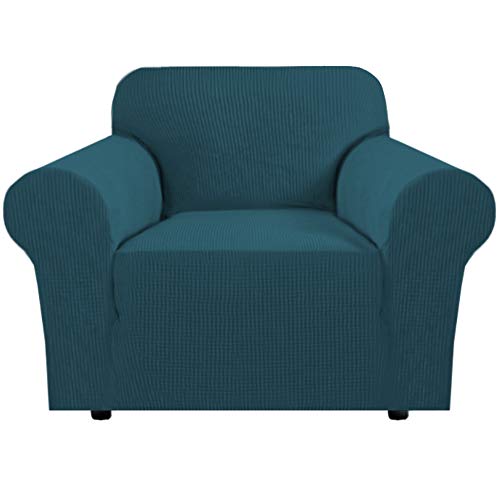 H.VERSAILTEX Stretch Sofa Covers Slipcovers 1 Seats Couch Covers Sofa 1 Seat Feature Soft Thick Textured Jacquard Fabric with Elastic Bottom Washable (Armchair 32″-48″ Wide, Deep Teal)