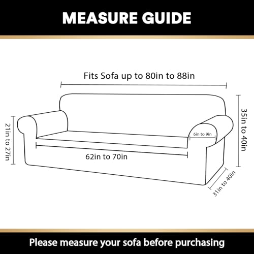GREAT FIT: Chair size fit the seat width up to 24 inch; Loveseat size fit the seat width up to 48 inch; Sofa size fit the seat width up to 66 inch; XL Sofa size fit the seat width up to 78 inch. Kindly measure before ordering, see the measuring guide in photos for a list of all measurements.