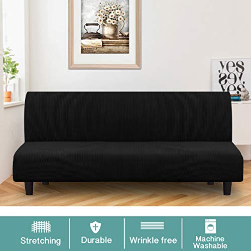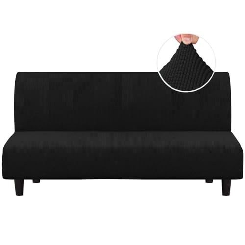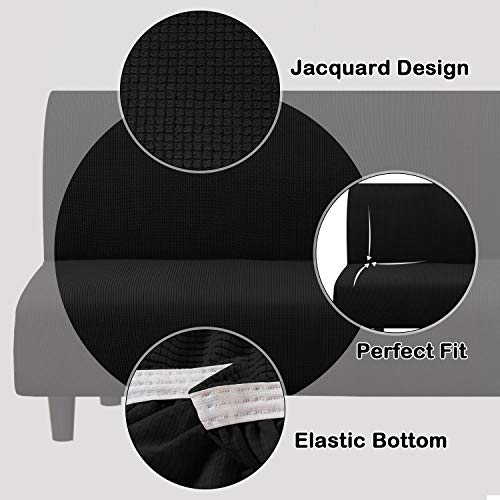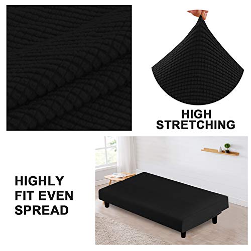 Turquoize Futon Cover Stretch Armless Sofa Slipcover Spandex Non Slip Soft Couch Sofa Cover Without Arms Futon Slipcovers for Living Room Furniture Protector with Elastic Bottom, Black