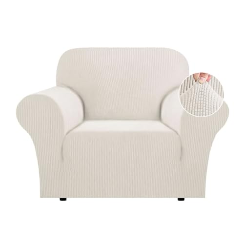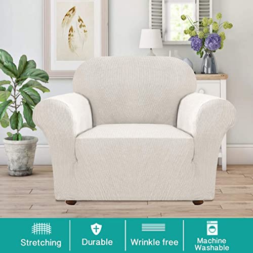 Turquoize Stretch Couch Cover Sofa Cover Chair Covers for Living Room Chair Slipcover with Arms Non Slip Arm Chair Cover Jacquard Pet Friendly Chair Furniture Protector(Armchair, Ivory)