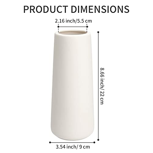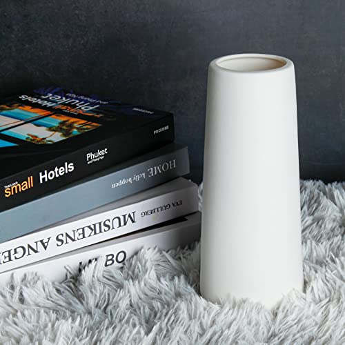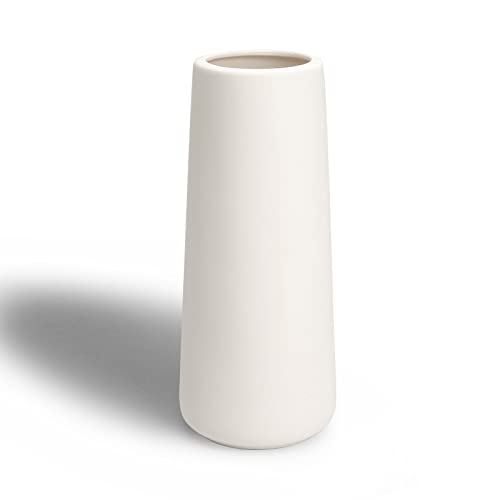 White Ceramic Vase – Flower Vase 9″ Dual Use for Hydroponic Plants & Dried Flowers, Minimalist Home Decor, Modern Table Centerpiece
