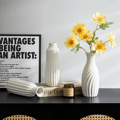 ♥ 【Simple Design】-This white ceramic vase is designed with a simple and elegant modern striped texture shape, with a stunning texture visual effect, which can be well integrated into various home decoration styles, so that a bouquet of flowers or dried flowers can create a delicate and elegant space for you and add artistic atmosphere.