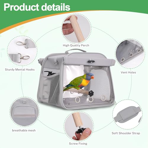 Conveniently transport your feathered companions—such as cockatiels, parrots, long-tailed parrots, cockatoos, macaws, and other small birds—for vet visits, shopping trips, or outdoor adventures.