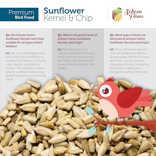 Be the first to review “Schoen Farms Sunflower Kernels & Chips – 10 lb Bag – Hulled Sunflower Hearts Bird Seed – Premium No-Mess Wild Bird Food for Chickadees, Finches & Jays”
