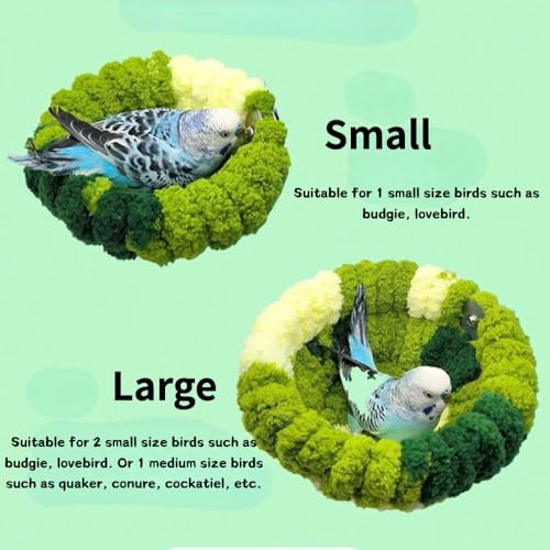 Description This bird nest is made of coral fleece for practical use, creative and beautiful. It is the perfect playground or sleeping bed for your little birds, make them feel like living in nature. Can also be a decor, perfect decor for home, garden, front yard, party, etc. Features – Color: Green/Blue/Pink/Colorful – Material: Coral fleece + plastic + metal – Size: Small: 14*14*7cm / 5.5*5.5*2.7inch, suitable 1 small birds such as budgies, lovebirds, etc. Large: 17.5*17.5*8.5cm / 6.9*6.9*3.3inch, suitable 2 small birds such as budgies, lovebirds; Or 1 medium birds conures, cockatiels, quakers, etc. – This resting bird nest is easy to install, will not let you feel the trouble of carrying, can be used anytime. – The Warm Bird Nest is the good place for your pet bird to rest or exercise, eat food. – Provides a warm place for birds from cold winds, which is convenience to use. – Keep your parrots warm on chilly mornings and evenings, and make them feel secure. – Simple and elegant with rustic style, woven bird nest giving you peace and closeness to nature. Package Including 1 x bird nest