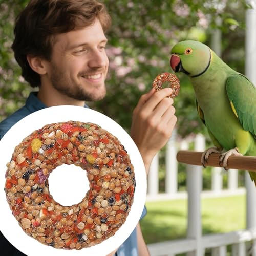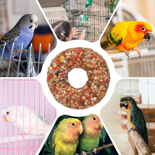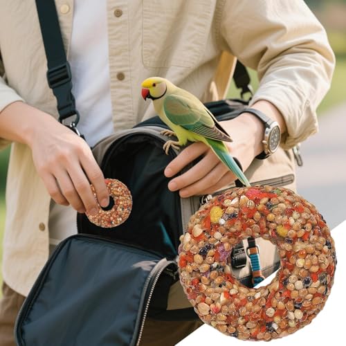 A thoughtful blend of grain and teether properties shaped into a donut form makes this bird food an excellent choice for lovebird owners seeking to enrich aviary settings foster training routines and satisfy natural foraging instincts with consistent supplies