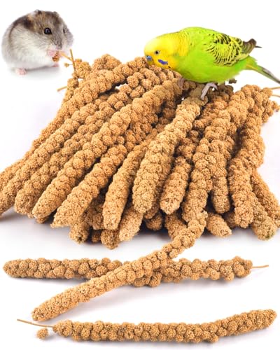 PERFECT FOR ALL BIRDS: Canaries millet treat is a popular and nutritious seed, suitable for kinds of bird species, like canary, budgie, parakeet, conure, lovebird, cockatiel and finches. Besides, millet spray is also a favorite food for hamster, chinchilla and more rodent pets