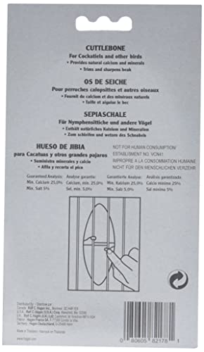Living World Cuttlebones are an excellent calcium source for birds. The rough edible surface helps to trim the beaks of birds as well as provide something for your bird to chew on. The cuttlebone is equipped with a holder, allowing you to place it throughout your bird’s cage. The Living World Cuttlebones can also be cut into smaller pieces or ground into a powder and used as a nutritional supplement for all types of birds.
