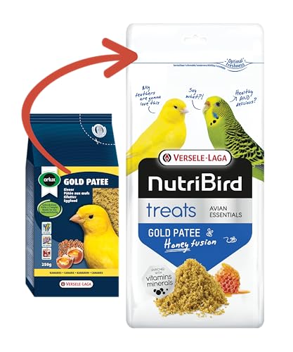 Versele-Laga NutriBird Treats Gold Patee Honey Fusion is a tasty and nutritious addition to the daily diet of ornamental birds. The formula contains all the essential nutrients that can contribute to healthy growth, beautiful plumage and stable vitality. Thanks to the OPTI-FEATHER-complex, the feed can support the build-up of feathers during moulting. The OPTI-DIGEST complex with prebiotics and MOS can promote intestinal health and allow improved nutrient absorption. The addition of iodine can positively affect thyroid function and support normal metabolism. Contains lysine and methionine, which can support the growth and build-up of feathers. Application: Offer unlimited during moulting. During the rest of the year, give a serving 2 to 3 times a week. Renew regularly.