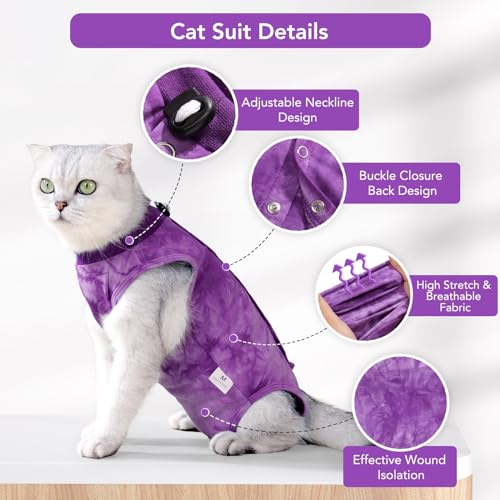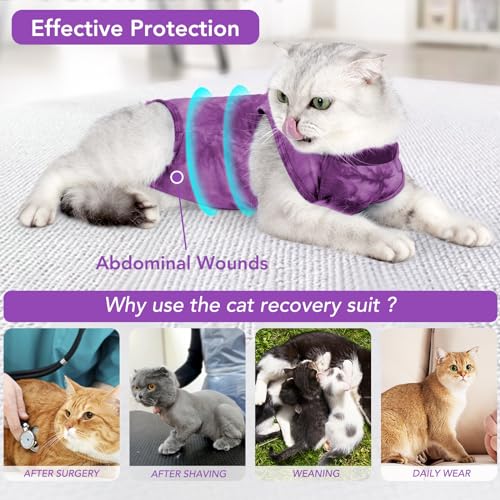 Cat Recovery Suit -Kitten Surgery Recovery Suit for Cats After Surgery, Spay Surgical Abdominal Wounds E-Collar Alternative, Anti-Licking & Skin Diseases Surgical Recovery Suit (Purple, Medium)