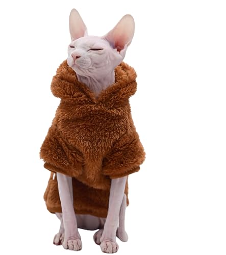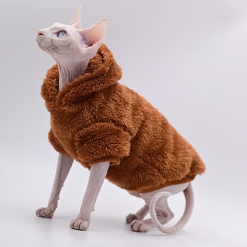 Hairless Cat Clothes Warm, Stretch,Comfortable,Thickness and Soft, Autumn and Winter Cat Apparel for Sphynx, Devon Rex, Cornish Cats (Brown, Medium)