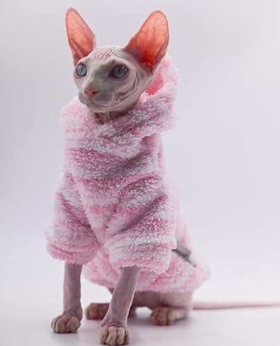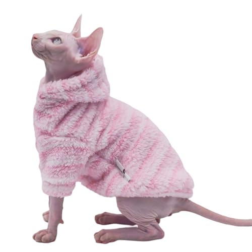 Hairless Cat Clothes Warm Thick Fashion Cat Hoodie for Autumn and Winter Cat Apparel for Sphynx Cats, Devon Rex Cats,Cornish Cats and Small Cats (Pink, XX-Large)