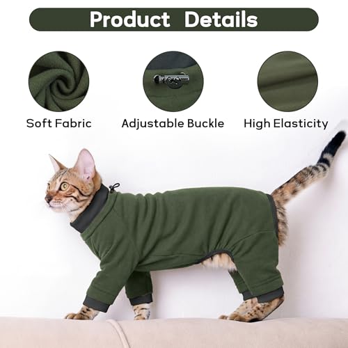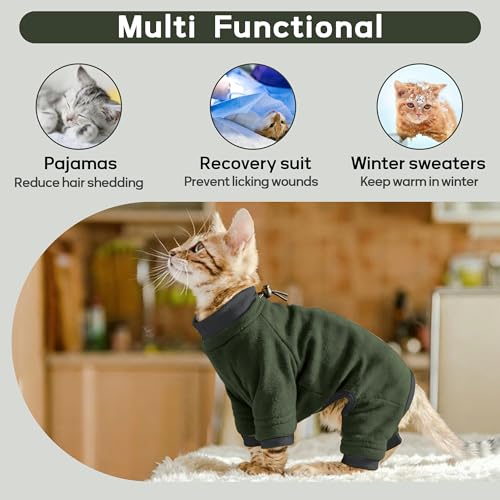 PUMYPOREITY Sticky Hair Cat Clothes, Prevent Hair Loss Cat Pajamas, Soft Cat Sweaters for Cats Only, Cat Hair Sticky Onesie, Cat Recovery Suit After Surgery, Green, S