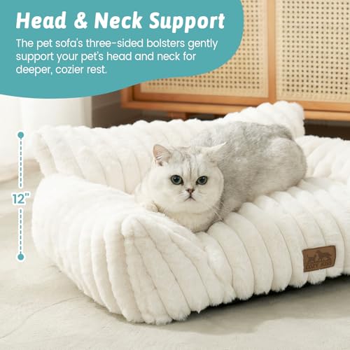 Support Design: COZY KISS small dog bed furniture is designed with a three-sided surround support, offers optimal head and neck support. Your cat or small dog can lounge lazily or sprawl in total comfort, enjoying deep, restful sleep on their very own cat chair.