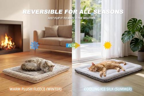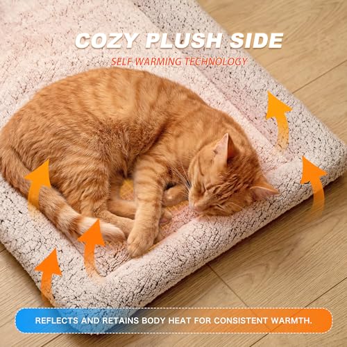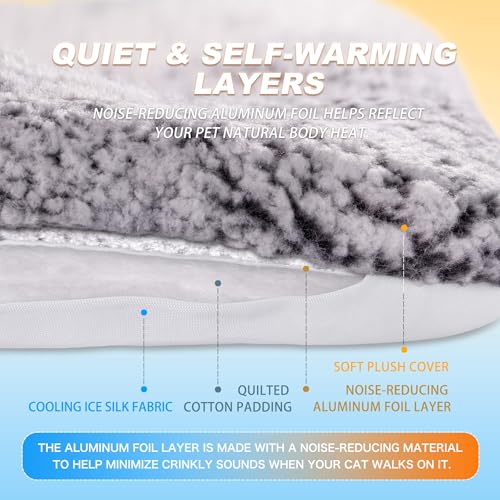 REVERSIBLE DESIGN FOR YEAR-ROUND COMFORT: This upgraded 3.0 self-warming cat bed features a reversible design, perfect for all seasons. The plush fleece side provides warmth with the thermal foil layer, while the cooling ice silk fabric on the reverse offers a refreshing feel during warmer weather. Simply flip the bed to meet your pet’s needs for year-round comfort.