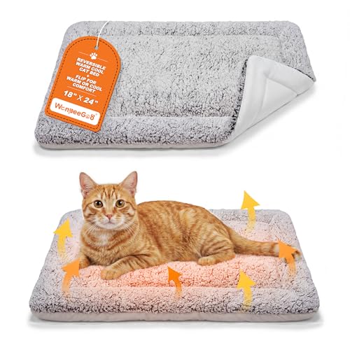 Self Warming Cat Bed, Reversible Warm Cool Cat Bed, Winter Warm Cats Pad & Summer Cooling Cats Mat, Soft Pet Mat for Kitty & Small Dogs, Perfect for Crates, Kennels, Beds, Sofas, Gray, 18″x24″