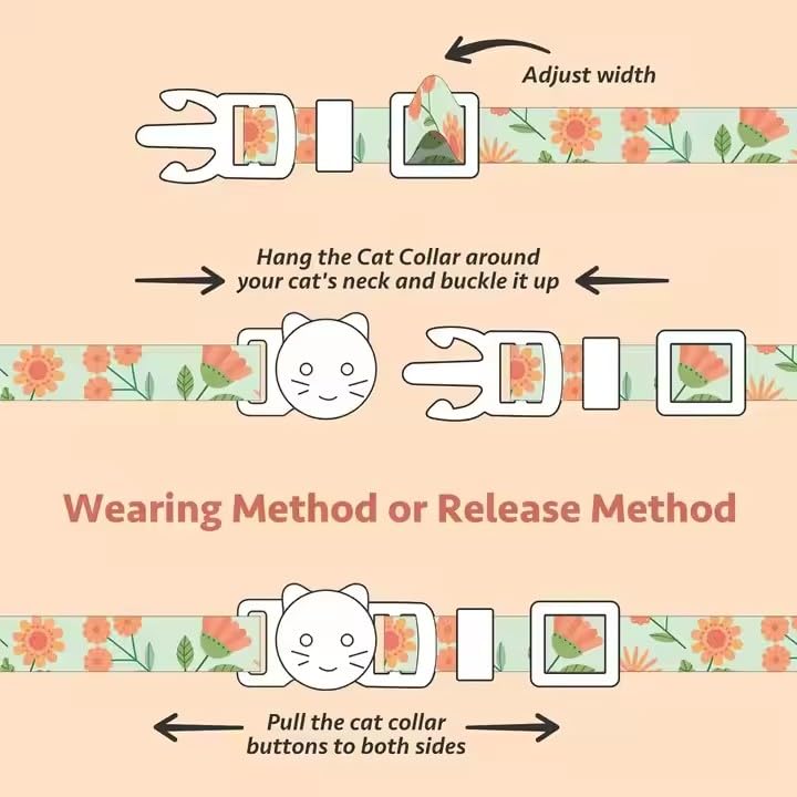 Safe Breakaway Cat Collar:Sturdy removable safety release buckle can be unlocked under certain strength, if your pet is stuck, it can be free to break free, avoiding your pet from being strangled by the collar and ensuring your pet’s safety