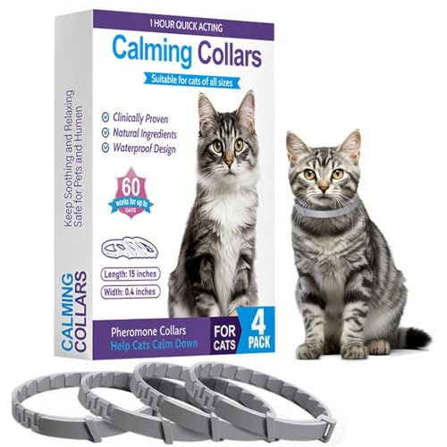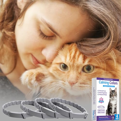 4Pcs Pheromone Calming Collar for Cats, Anxiety Aggression Relief Stress with 30 Days Long-Lasting Effect, 15inch Adjustable for Most Cat(Grey)