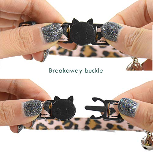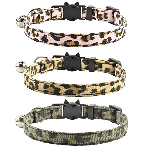 Breakaway Cat Collars with Bell, Set of 3, Durable & Safe Cute Kitten Collars Safety Adjustable Kitty Collar for Cat Puppy 7.5-11in (Leopard)