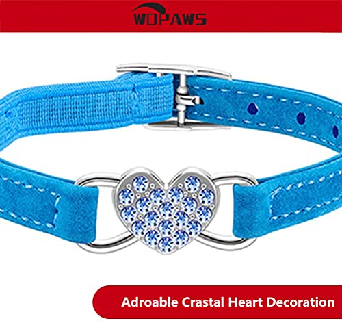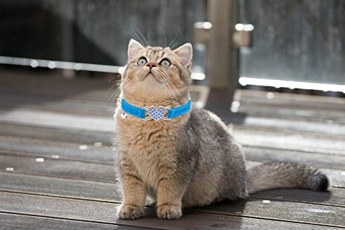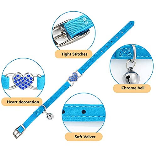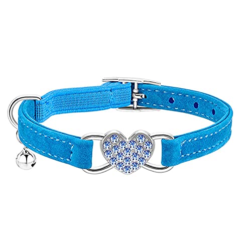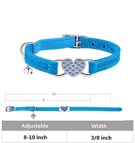 Heart Bling Cat Collar with Safety Belt and Bell Adjustable 8-10 inches for Kitten Cats (Blue)