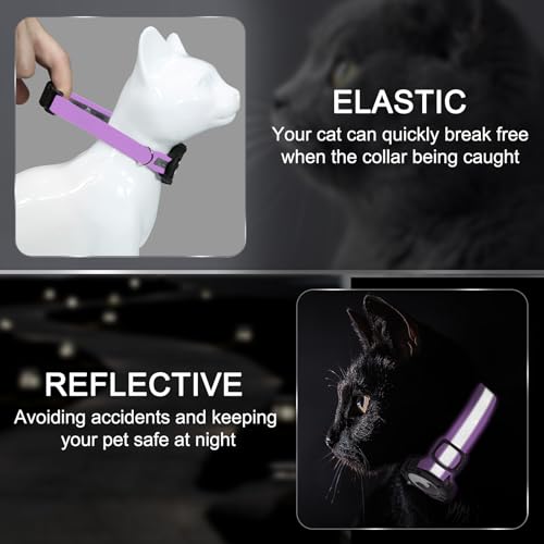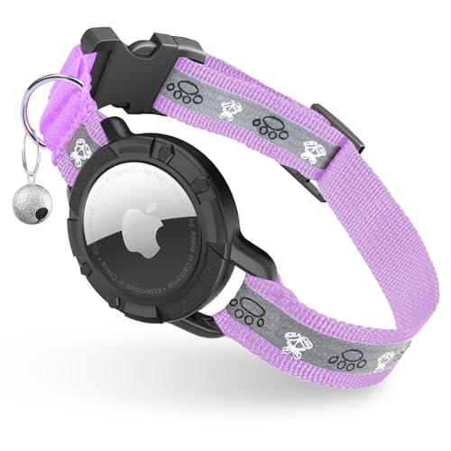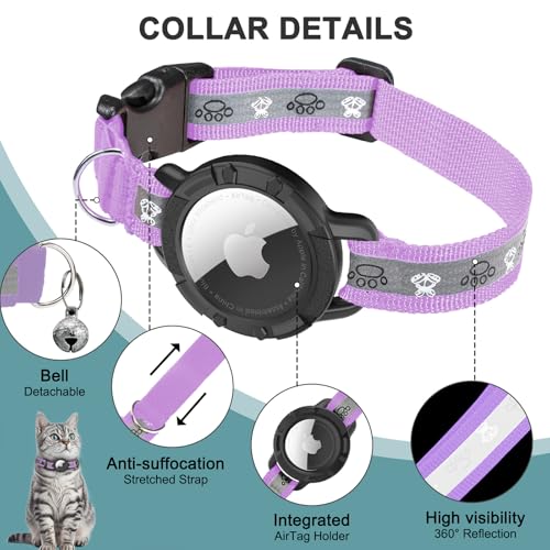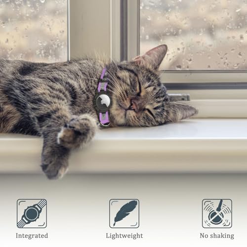 Reflective AirTag Cat Collar, Integrated Cat Tracker Collar with Air Tag Holder and Bell, Safety Elastic Band Cat GPS Collars for Girl Boy Cats, Kittens and Puppies (Lilac,XS)